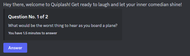 * [x] **(PREMIUM) Play our Discord social game, Quiplash! Quiplash is a comedic "fill-in-the-blank" game where players answer humorous prompts with their most creative, outrageous, or silly responses. Other players vote on the best answers. So, you're not just playing to win, but to make everyone else laugh!** [**Read more here**](https://aidocs.soldecoder.app/product-guides/quiplash-a-party-game)
