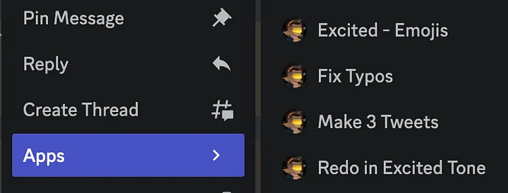 <figure><img src="https://2420590043-files.gitbook.io/~/files/v0/b/gitbook-x-prod.appspot.com/o/spaces%2FXWzvj4XkfLBLdoEPhn3g%2Fuploads%2FGjZsOmrxHQord9qXebQv%2F4d.webp?alt=media&#x26;token=5bf920a1-d8bc-42b0-978b-08d67f052ed8" alt=""><figcaption><p><em><strong>Right click on any message to bring up new "Apps" that we've devloped, described below</strong></em></p></figcaption></figure>