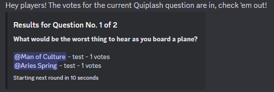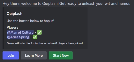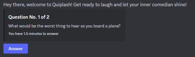 QuipLash on Discord takes this experience online, allowing you to play with friends and community members no matter where they are in the world. Let's get you started, shall we?